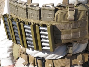 Its purpose built for carrying the California Comp Works carriers. The CCW carriers are the UM84 style; there is a 2.75″ section of rigid nylon underneath for them to attach to. They are easily removable if I’m not using a shotgun. The vest has two duty keepers that tie into my pants belt and duty belt the prevent it from riding up when ripping out the shells. The suspension system is an H-harness style to distribute weight better and avoid pinching the back of the neck.