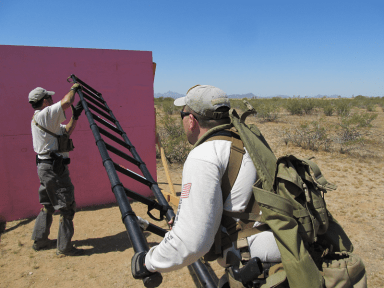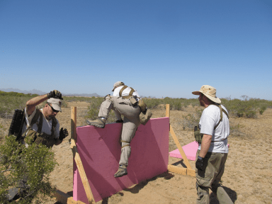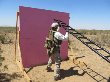 The wall prop is modular so we could practice going over it in 4 foot form as well as 8 foot form.