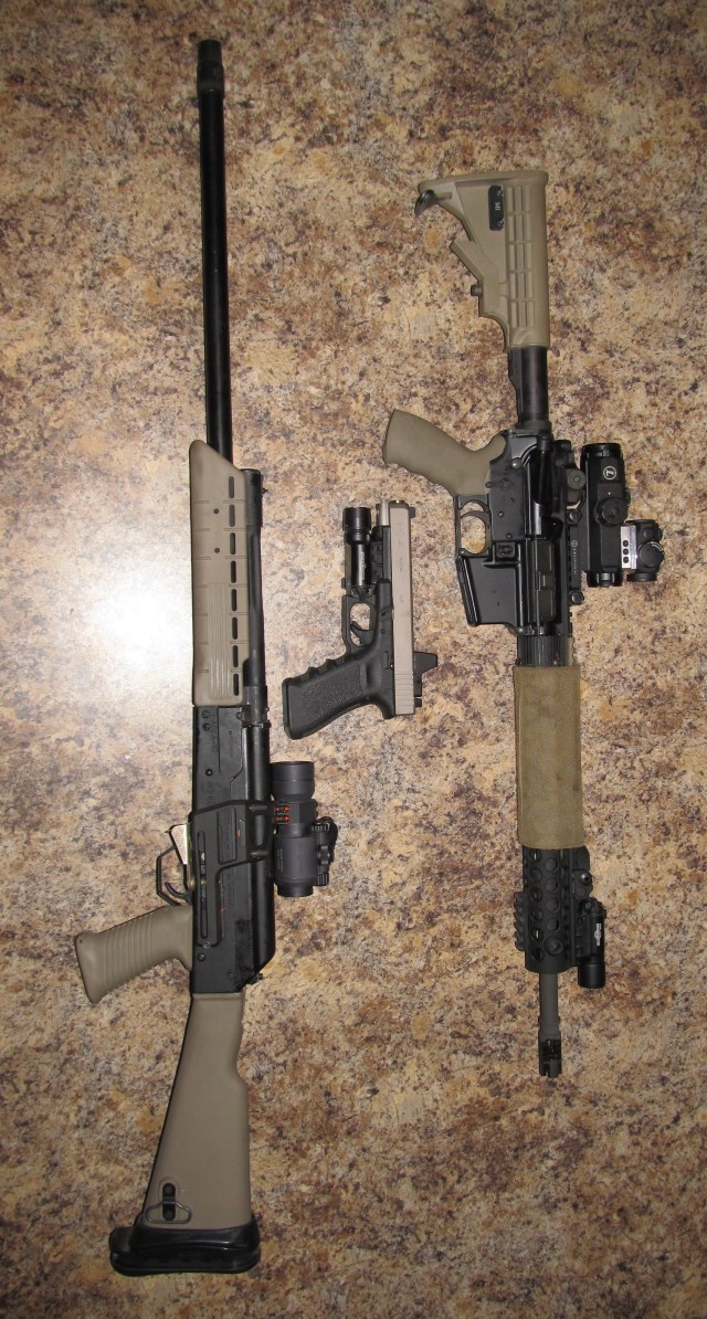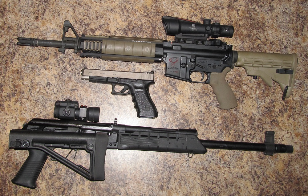 Unfortunately I did not have enough time on all my primary guns before Ironman this year. I am taking all these as back ups in the event I have a problem with any of the primaries. I was fortunately able to diagnose an intermittent malfunction in my primary rifle and fix it by replacing a weak extractor spring before going to Ironman. Because I am bringing these and carrying them with me from stage to stage, I probably won’t need to use any of them. Every time I carry spares I never need them. I am not superstitious about many things, but I am a firm believer in Murphy’s law. It’s a good thing the farthest hike is only a half mile round trip.
