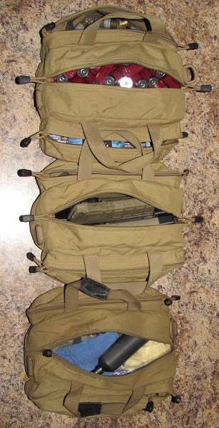 Spec Ops Brand organizer bags that go inside my ruck. One for shotgun ammo, one for rifle and pistol ammo, one for maintenance.
