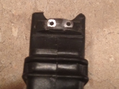 I’m glad this happened at a local match that cost me $15.00 + ammo to shoot vs a major match with much more time and expense involved. I was able to take corrective action before going to Ironman. A friend recommended that I should reinforce the locking tabs by drilling and tapping some set screws into the back of the magazine and reinforcing it with JB Weld. I followed this advice and fitting the new reinforced tabs to the gun with a file.