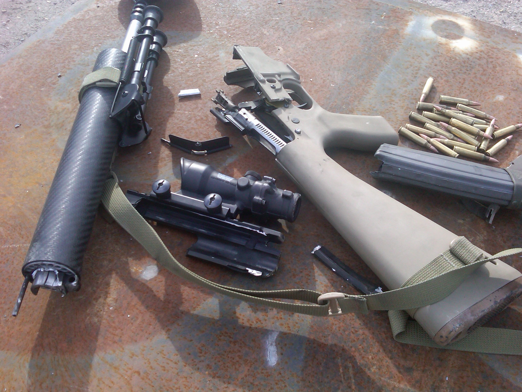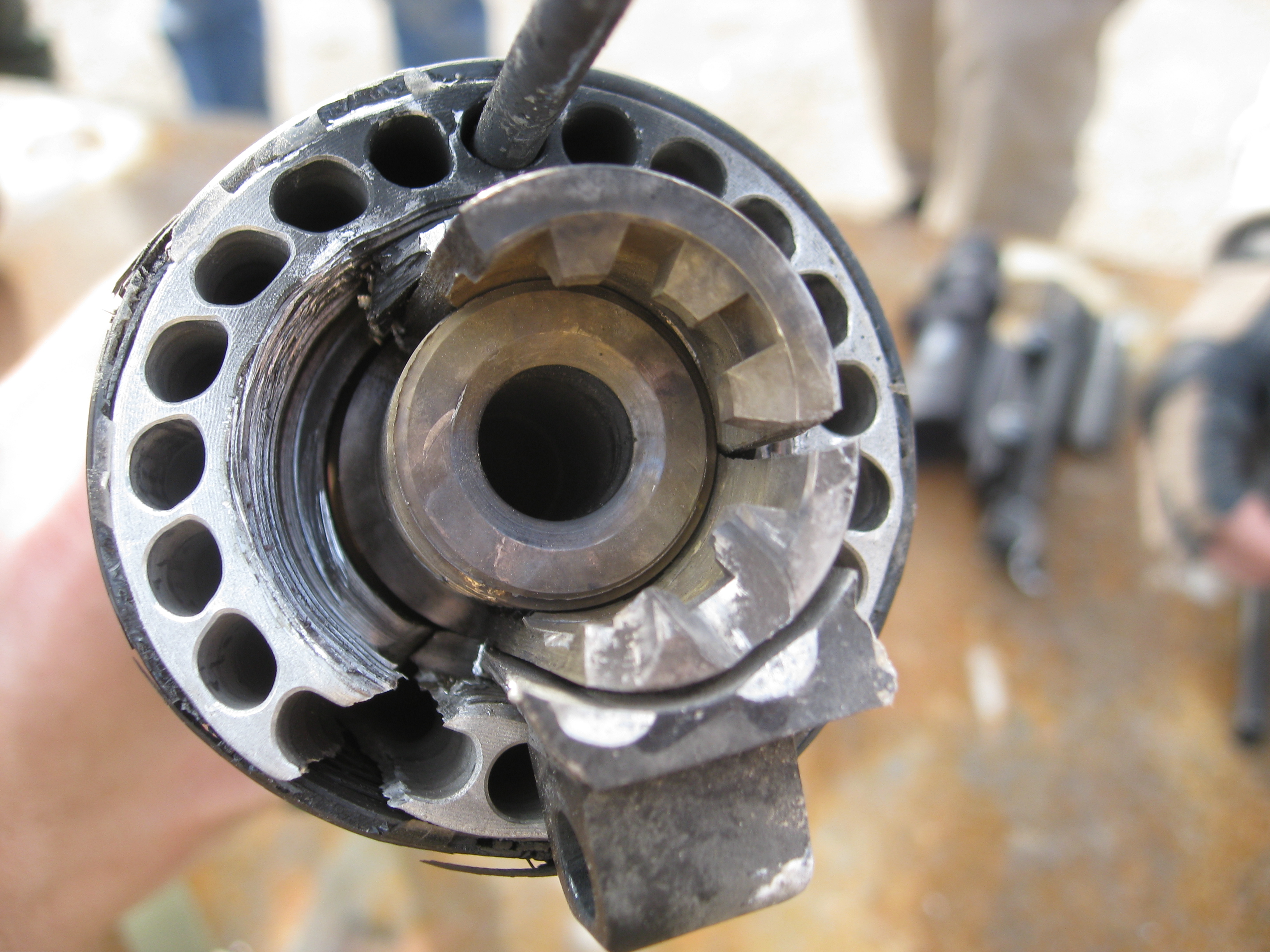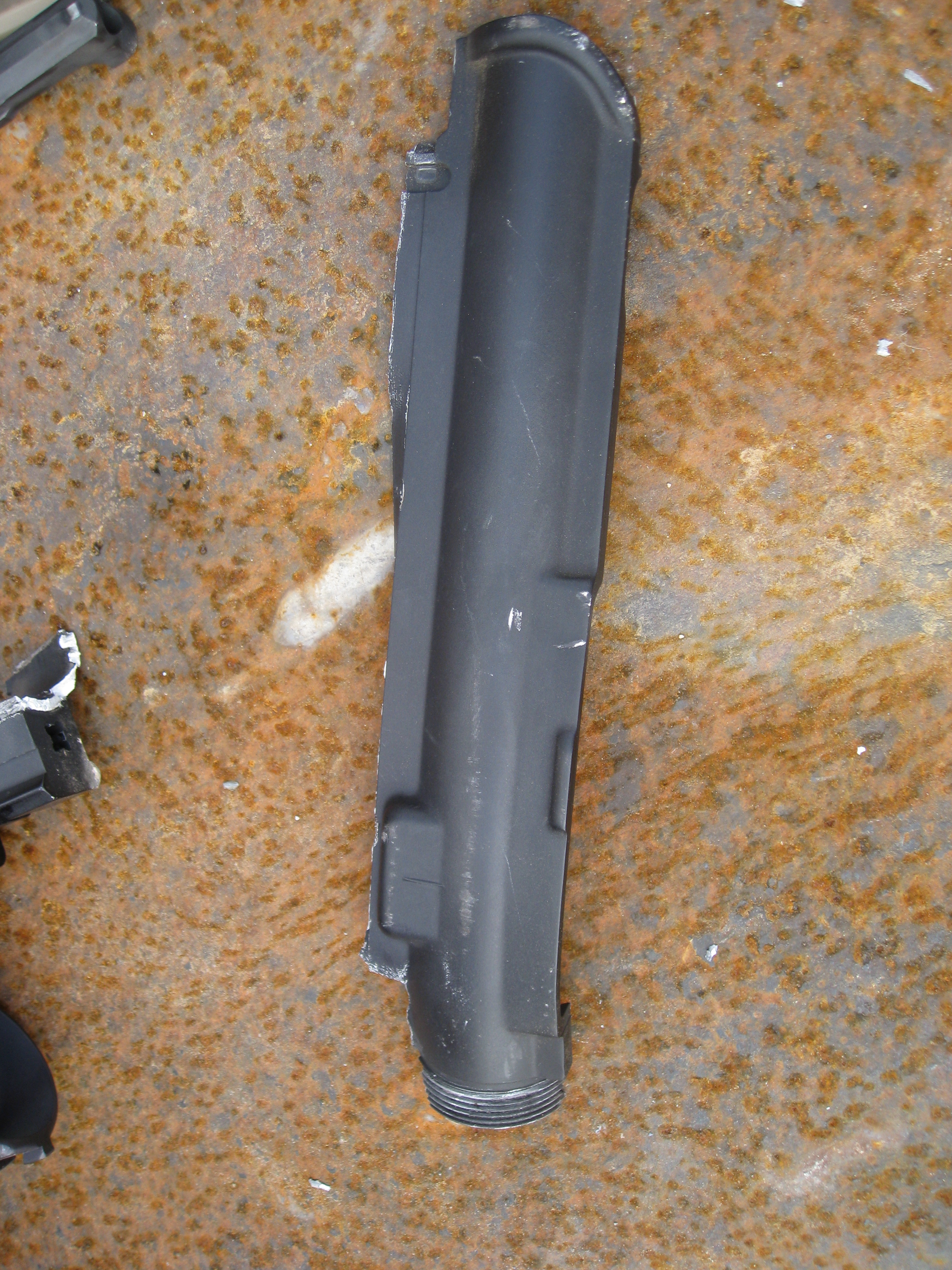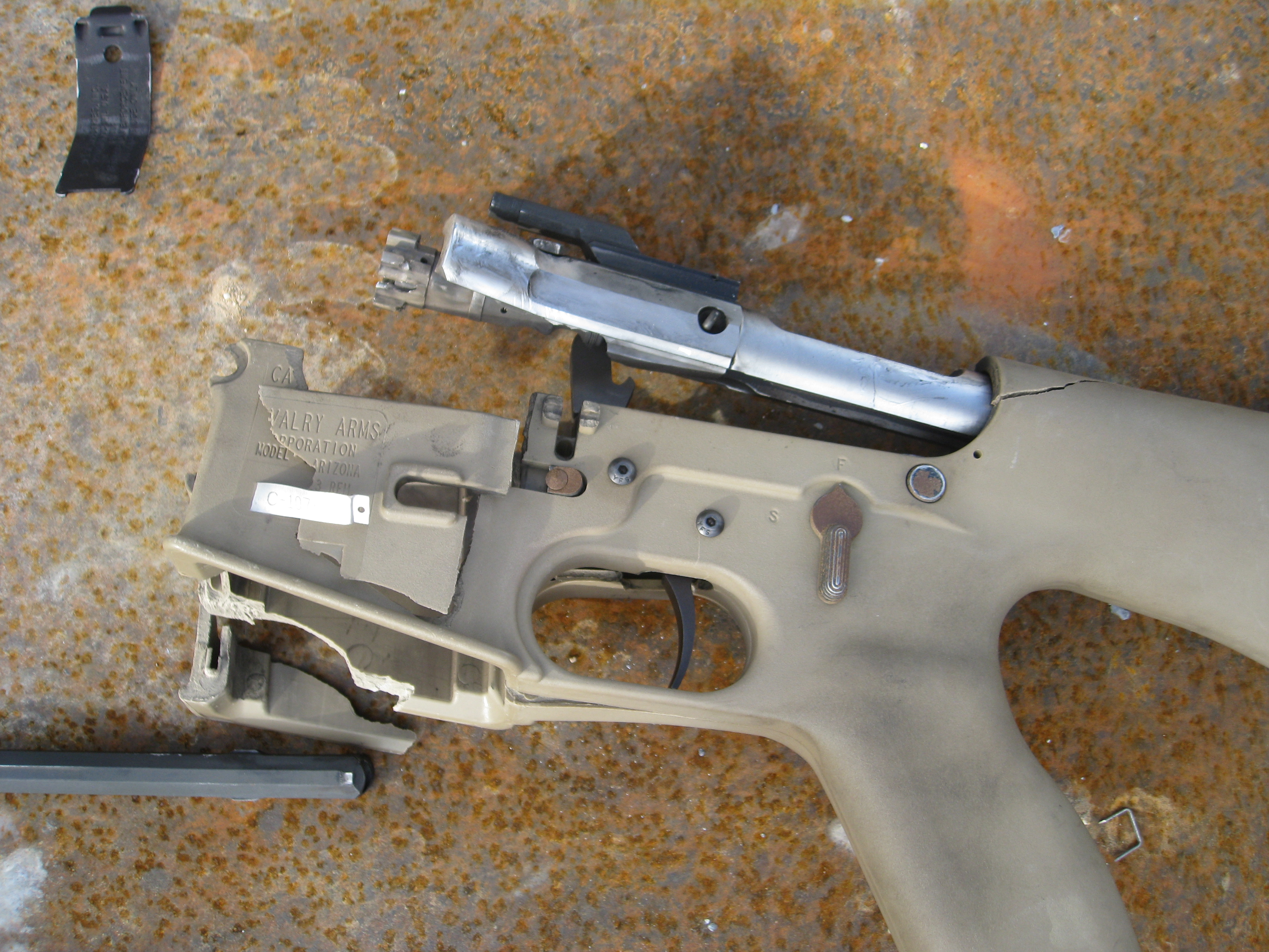 The bolt carrier also suffered severe structural damage.