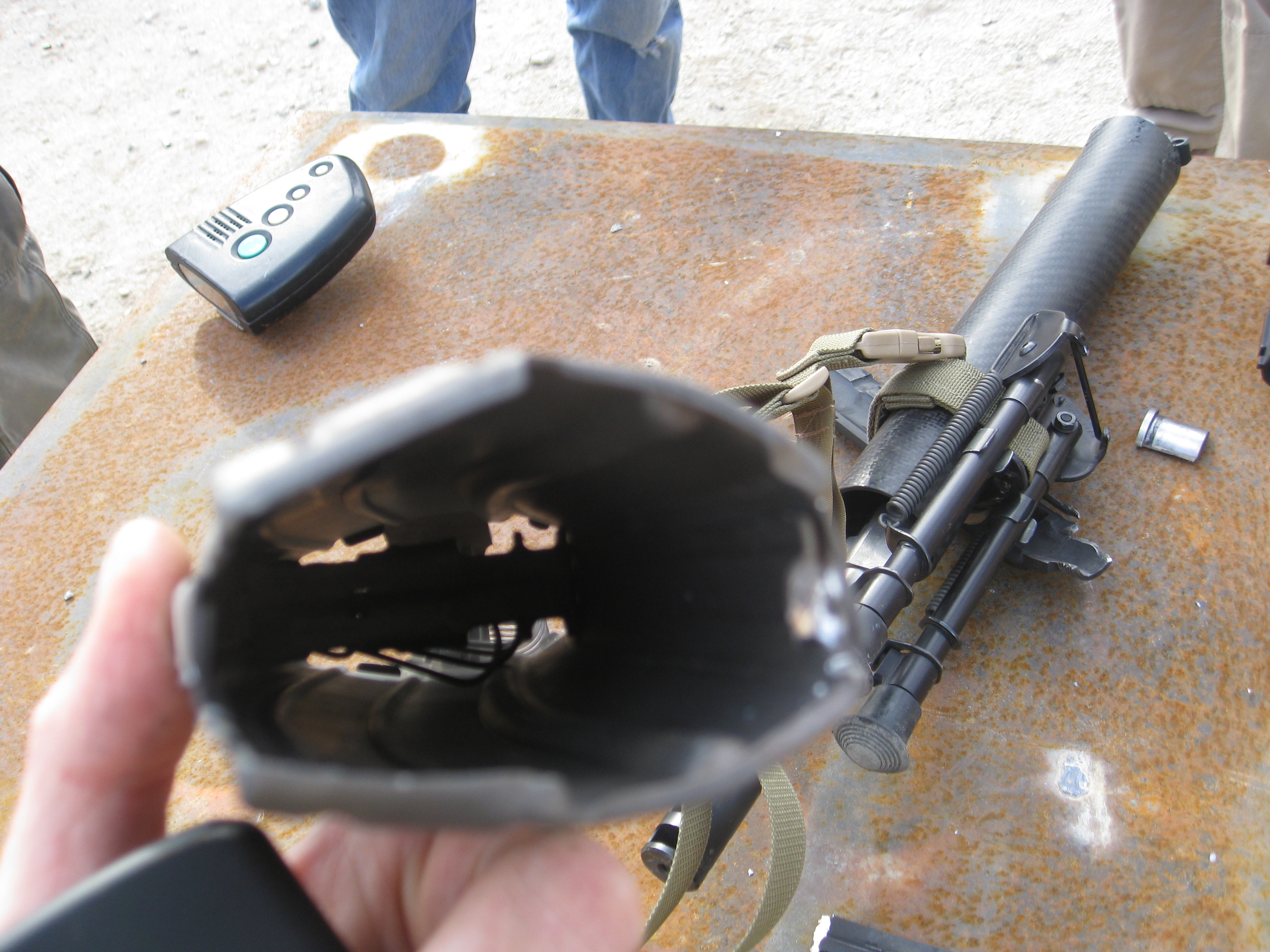 The CAV-15 MKII polymer receiver fractured at multiple points. We speculated that the lower fracturing like this saved Paul from more severe injury as it gave the over-pressure more room to escape more rapidly.