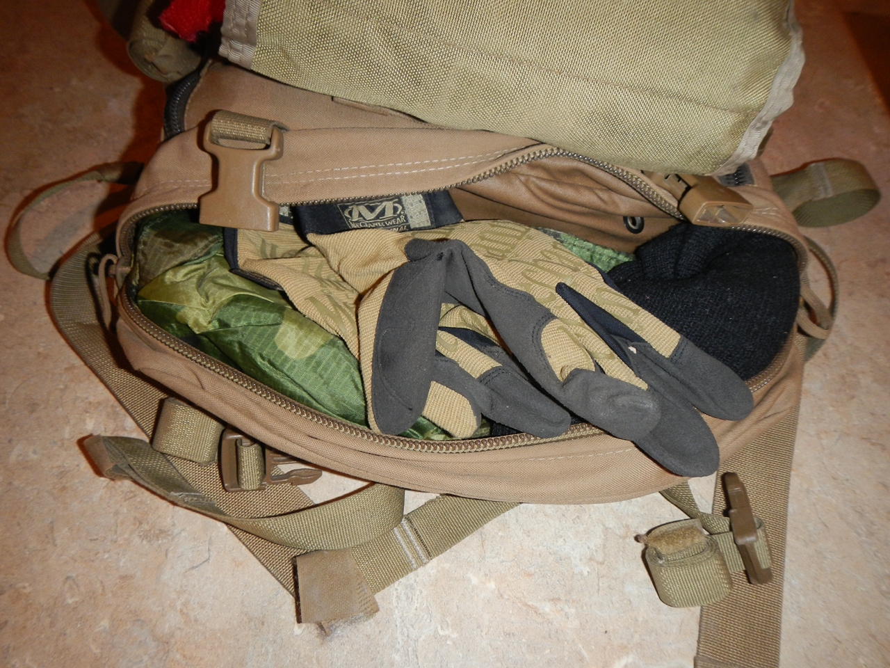 Gloves, Pancho, and knit cap in the bottom of the JACS just in case to deal with unexpected environmental conditions.